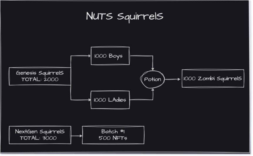 &#x20;    SquirrelS is our flagship NFT Collection and the most effective way to farm $NUTS tokens.&#x20;